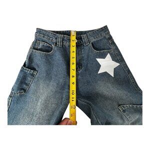 Star Y2K Theme Wide Leg men's Blue Jeans Size ~26 Gives Muriel's Wedding Vibes