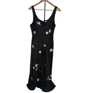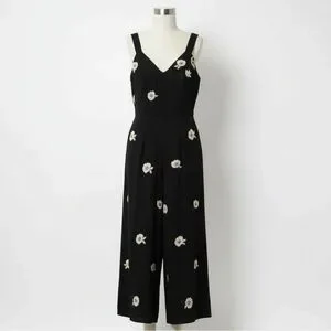 Wayward Fancies by eShakti Large Black Floral Embroidered Wide Leg Jumpsuit Boho