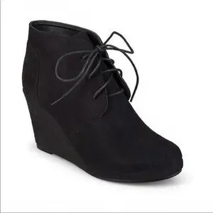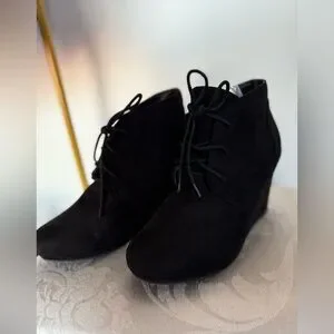 NEW Merona Black Lace-Up Ankle Vegan Suede Wedge Boots
