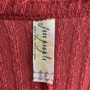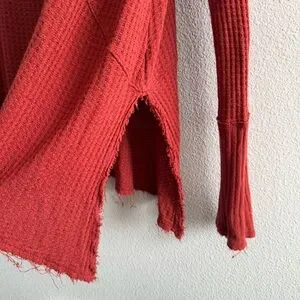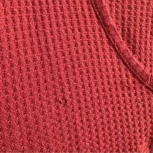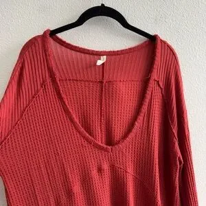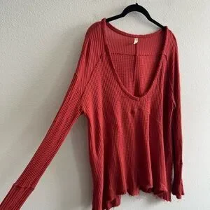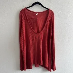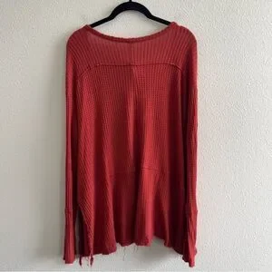 Free People Drippy Thermal Sunset Park Top Dark Rust Red Long Sleeve Waffle Knit