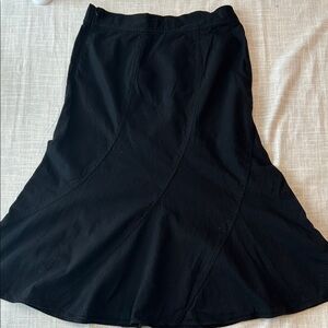This elegant black skirt is perfect for any occasion. Its classic design offers a versatile look that can be dressed up or down. 100% cotton. Used but in excellent condition. No rips, stains, tears, or holes. Waist seam to seam is approximately 17.5 inches. Length approximately 36.5 inches