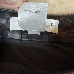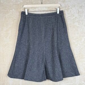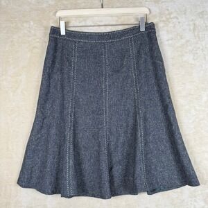 A sophisticated A-line midi skirt from White House Black Market in a dark wash. This skirt features elegant vertical stitching details throughout the front panels, creating a flattering and structured silhouette. The classic A-line cut gently flares from the waist to the hem, offering a timeless and versatile look. Perfect for a polished office ensemble or a chic dinner out.