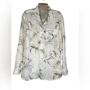 Tommy Bahama Men’s 100% Linen Long Sleeve Cruise wear Button Up Shirt Tropical L