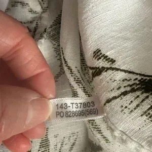 Good pre-owned condition from a smoke-free home. Please note: there is one light, translucent stain (noted in photos). It is much more visible in the close-up photography than it is in person and does not detract from the overall look of the shirt. Otherwise, it is free of any other flaws.