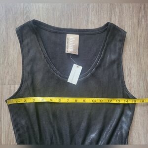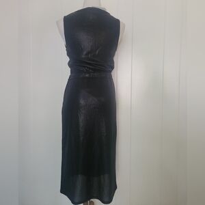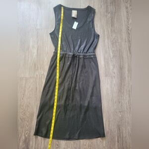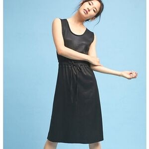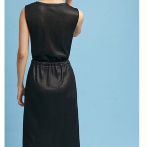 NWT Anthropologie Dolan Metallic Black Knit Drawstring Waist Ribbed Dress SM P
