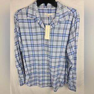 NWT Copper Key Light Blue and White Long Sleeve Button Plaid Shirt Sz XS