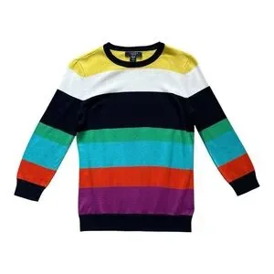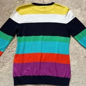 Chaps Ralph Lauren Striped Knit 3/4 Sleeve Rainbow Pullover Sweater Size Petite Medium. Ribbed crew neckline. Ribbed cuffs and bottom hem. Tight knit cotton model mix.