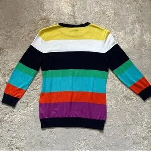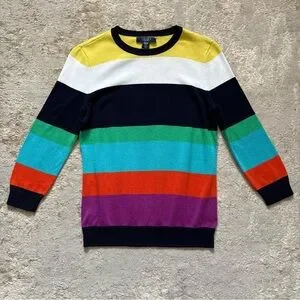 Ralph Lauren Chaps Striped Knit 3/4 Sleeve Rainbow Pullover Sweater Size Medium