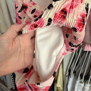 Kate Spade Pink Floral Bay of Roses Smocked One Piece Swimsuit