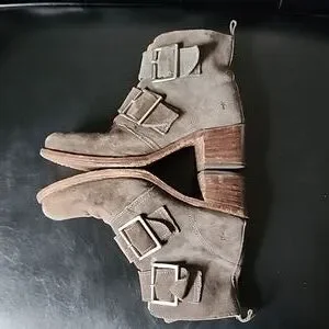 Frye Sabrina Double Buckle Suede Ankle Boots Size 10