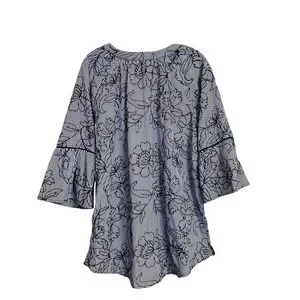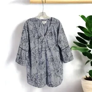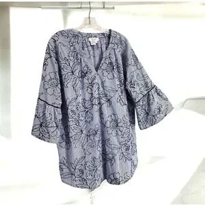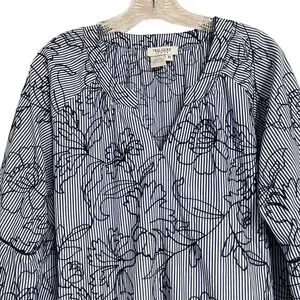 Tru Luxe Jeans XL Top Striped Floral Embroidered Pullover Boho-Chic Blouse