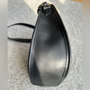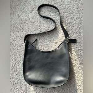 Elegant black leather hobo bag with a sleek design. Features a comfortable shoulder strap.