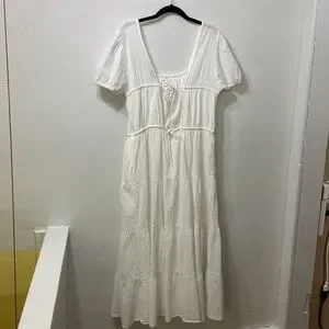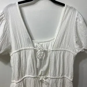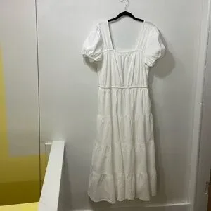 & Other Stories Women’s White Elastic Puff Sleeve ,Tie Back,Midi Dress.Size-US-M