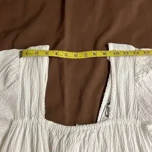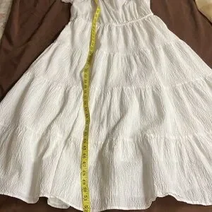 Color-White;Shoulder-12;Bust-38;Waist-33;Hip- 50;Length-52.It has pockets and elastic at waist
