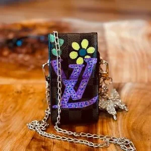 Louis Vuitton repurpose handpainted converted cigarette case brown DAMIER canvas