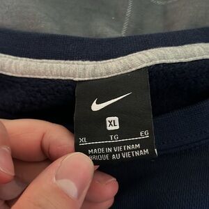 Experience the perfect blend of style and comfort with this Nike long sleeve tee, featuring a striking blue and white color palette. The shirt showcases 'VANCOUVER VICTORIA' text and the iconic Nike swoosh in white, making it a standout piece for casual athletic wear. Made from a soft cotton-blend fabric, it offers both durability and comfort for everyday activities. Measurements: Chest Width: 45.1 cm | 17.8" Sleeve Length: 153 cm | 60.3" Body Length: 57.2 cm | 22.5" Shoulder Width: 44.6 cm | 17.6" Waist Width: 42.2 cm | 16.6"