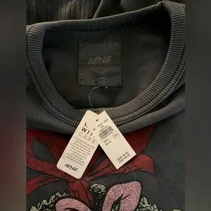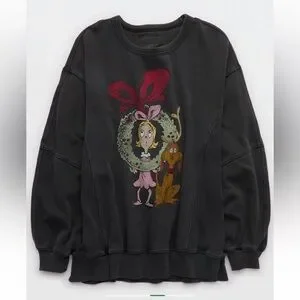 Aerie Tres Chic Sweatshirt in shell gray with Cindy Lou Who graphic. Size large. NWT.