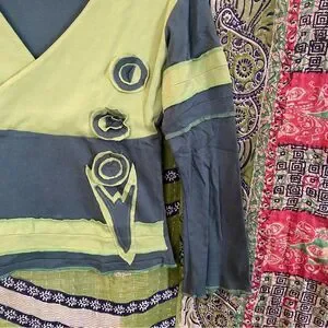 ▪️Style: V- neck, long sleeve, flared sleeves, patchwork, appliqué details, unique, vintage, retro, Y2K, 90’s, 00’s, hippie, boho, gypsy