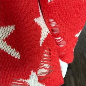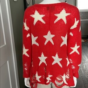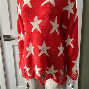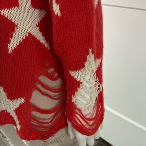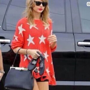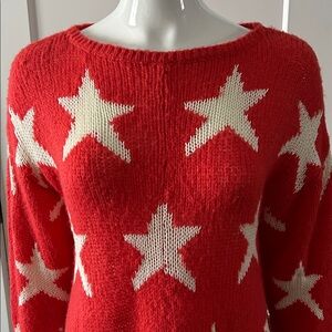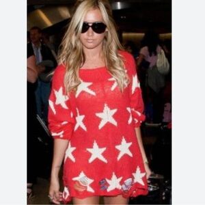 Wildfox “Seeing Stars” Lennon Sweater – Red & White | XS (Fits S) | Celebrity Favorite Iconic and effortlessly cool, the Wildfox Seeing Stars Lennon Sweater is a standout piece loved by celebrities including Taylor Swift. This ultra-soft, lightweight knit features a bold white star pattern on a vibrant red background, finished with Wildfox’s signature distressed detailing for that perfectly undone, lived-in look. Designed in an oversized silhouette, this sweater is tagged an XS but comfortably fits a Small as well, making it ideal for a relaxed, slouchy fit. The airy knit makes it perfect for year-round layering—cozy without the bulk. Details: • Size: XS (Oversized; fits Small) • Color: Red with white stars • Approx. measurements: 20” pit-to-pit, 28” length • Fabric: 56% acrylic, 34% nylon, 10% wool, stars in 100% rayon • Ultra-soft, lightweight knit • Signature distressed hem, cuffs, and neckline Condition: Like new condition with no flaws or call-outs. A cult-favorite Wildfox piece that blends laid-back California vibes with statement style—perfect with denim, leggings, or layered over a slip dress. No longer in production.
