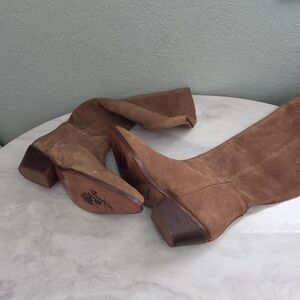 Free People Brown Suede Slouch Heeled Boots