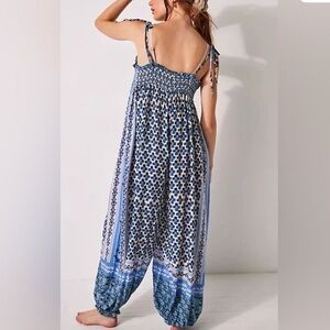 Free People Intimately Blue Boho Relaxed Rule The World Maxi Romper Women’s Sz L