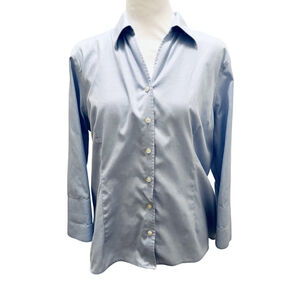 Women's Lands' End Blue No Iron Pinpoint Oxford Button Down Shirt