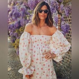 Sleeper 100% linen atlanta midi dress in roses, large