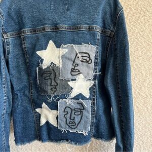 -patches, painted starts and face doodles on back and painted stars on front