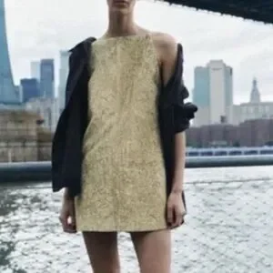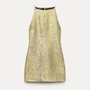 Zara Collection Shiny Gold Halter-style Mini Dress Medium