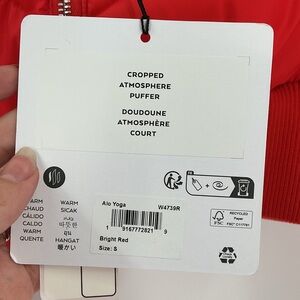 Alo yoga cropped atmosphere puffer coat new bright red size small