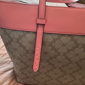 Chic Kate Spade tote with pink accents and floral gray pattern. Ideal for everyday use.
