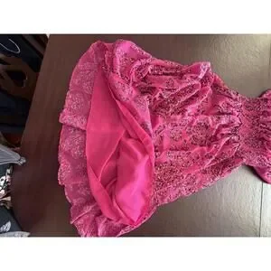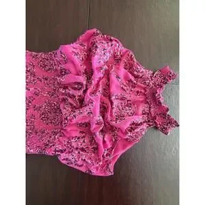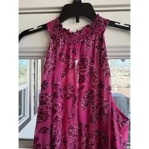 WHBM Pink Floral Applique Burnout Halter Smock-Neck Midi