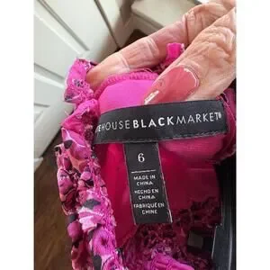 White House Black Market Pink Floral Burnout Smock-Neck Midi Dress
