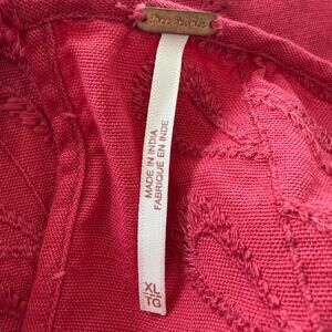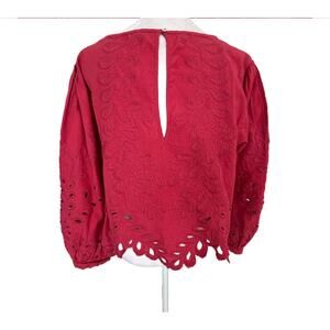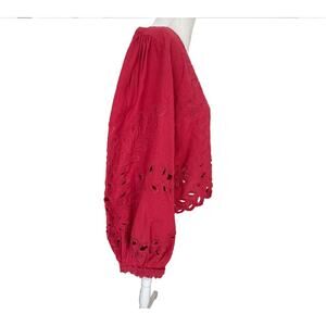 Free People Red Oleander Top Linen Eyelet Cropped Puff Sleeve Women Size XL NWT