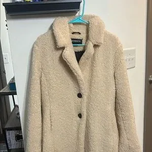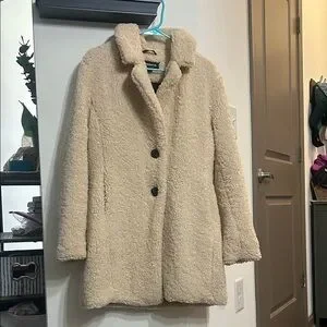 Tannish-light brown teddy jacket with 2 button closure and pockets. In great condition.