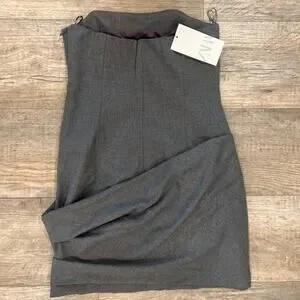 BLOGGER FAVE!!! Gray off-the-shoulder short dress with a straight neckline. Draped fabric detail on the hem. Matching lining. Invisible side zip fastening. From ZARA, in size M. New with tags. Sold out in stores.
