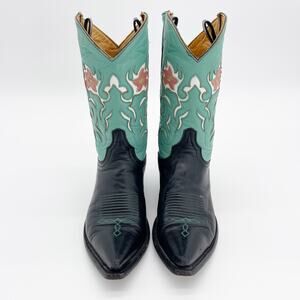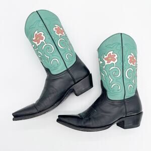 Old Gringo Women's 6 Turquoise Black Pee Wee Flower Inlay Short Cowgirl Boots