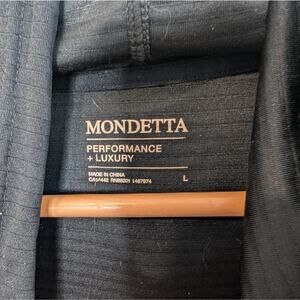 The fabric has a smooth, breathable feel with subtle texture, making it ideal for layering during warm-ups, cool-downs, or casual wear. Finished with a discreet Mondetta logo detail near the hem.