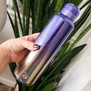 Starbucks Metallic Silver & Glacier Blue Gradient Jewel Glitter Lid Stainless Steel Water Bottle Tumbler.