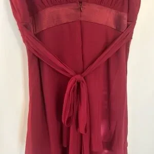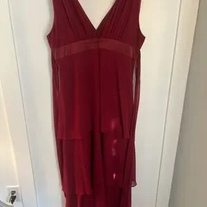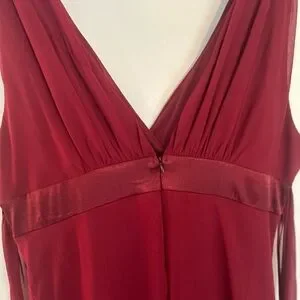 This elegant sleeveless formal dress in a rich burgundy shade is perfect for making a statement. Its flowing design offers a graceful silhouette, ideal for special occasions.