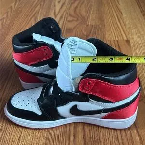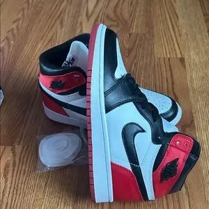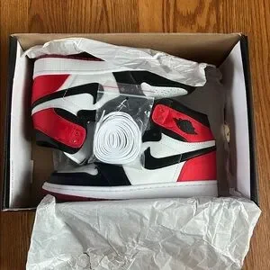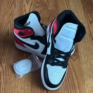 Nike high-top sneakers with a striking red, black, and white design. Ideal for everyday style.