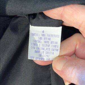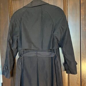 Excellent preowned condition which might never have been worn. Has been in my closet in a plastic covering for probably 15-20 years and is still in style and a classic dark brown microsuede fabric. Has a buttoned lining that can be removed for warmer weather.