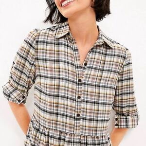 LOFT Multicolor Plaid flannel babydoll swing shirt dress mini knee length