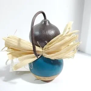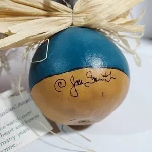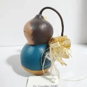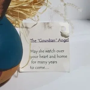 The "Gourdian" Angel Gourd Guardian handpainted signed Jm Smith. Protector, watches over your heart and Home. Would be a great Birthday or Mother's Day gift, give to someone special. The color blue is showing up darker than it actually is, its more of a teal color. In excellent condition. Give someone you love this cute Angel of protection, for home, office work desk, mantle piece, Kitchen protector.