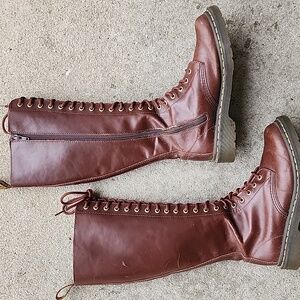 Stylish knee-high boots with a lace-up front. Durable and fashionable for any outing.