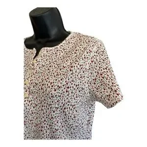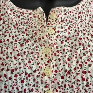 Vintage Women's Faded Glory Floral Top - White and Red Size Large