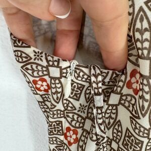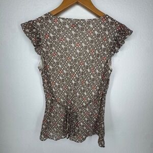 Ann Taylor Womens Y2K Babydoll Blouse Top Size 4 Petite Brown Geometric Zip Vtg