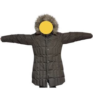 Eddie Bauer Women's Down Parka Quilted Long Coat Faux Fur Size XL 650 Fill Brown