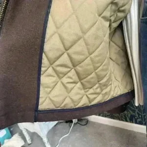 Stay warm and cozy in this Woolrich men's zip chore coat. This barn jacket features a metal zipper, 3 pockets, a leather fold collar, adjustable buttons on the wrist & waist, and a quilted interior.