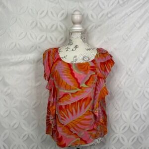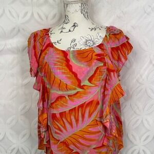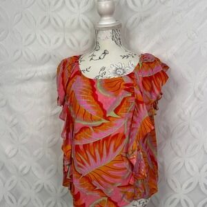 Cynthia Rowley Tropical Floral Ruffle Rayon Blouse NWT